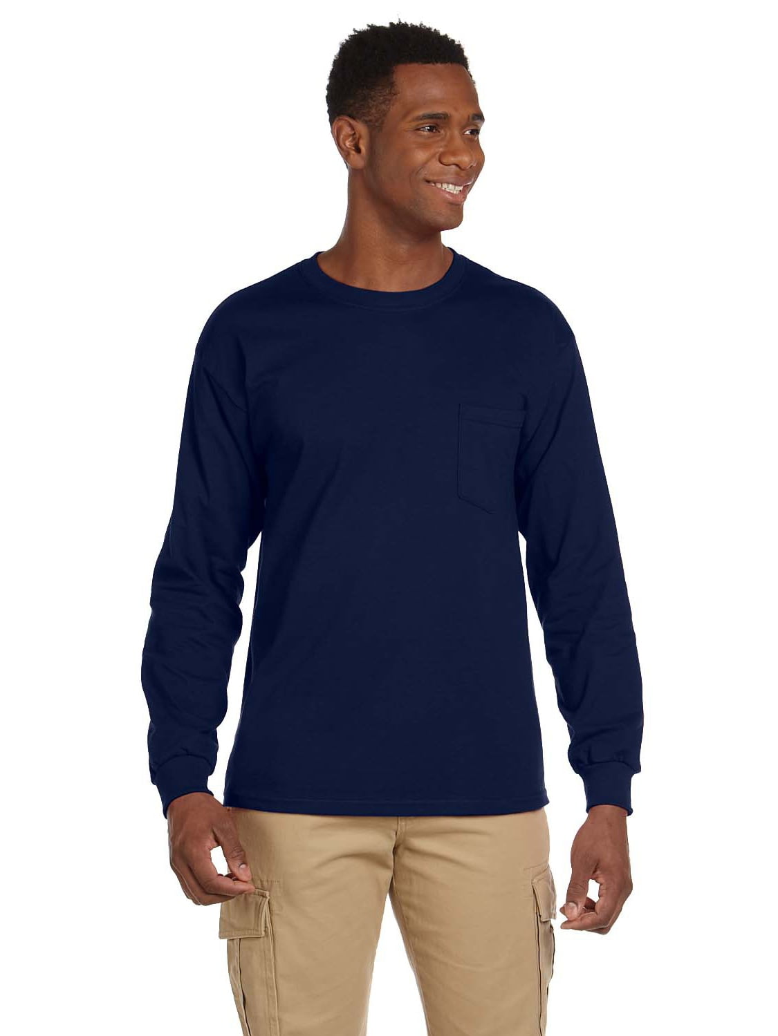 Gildan Ultra Cotton 6 Oz Long Sleeve Pocket Men T Shirt Navy Large Walmart Com